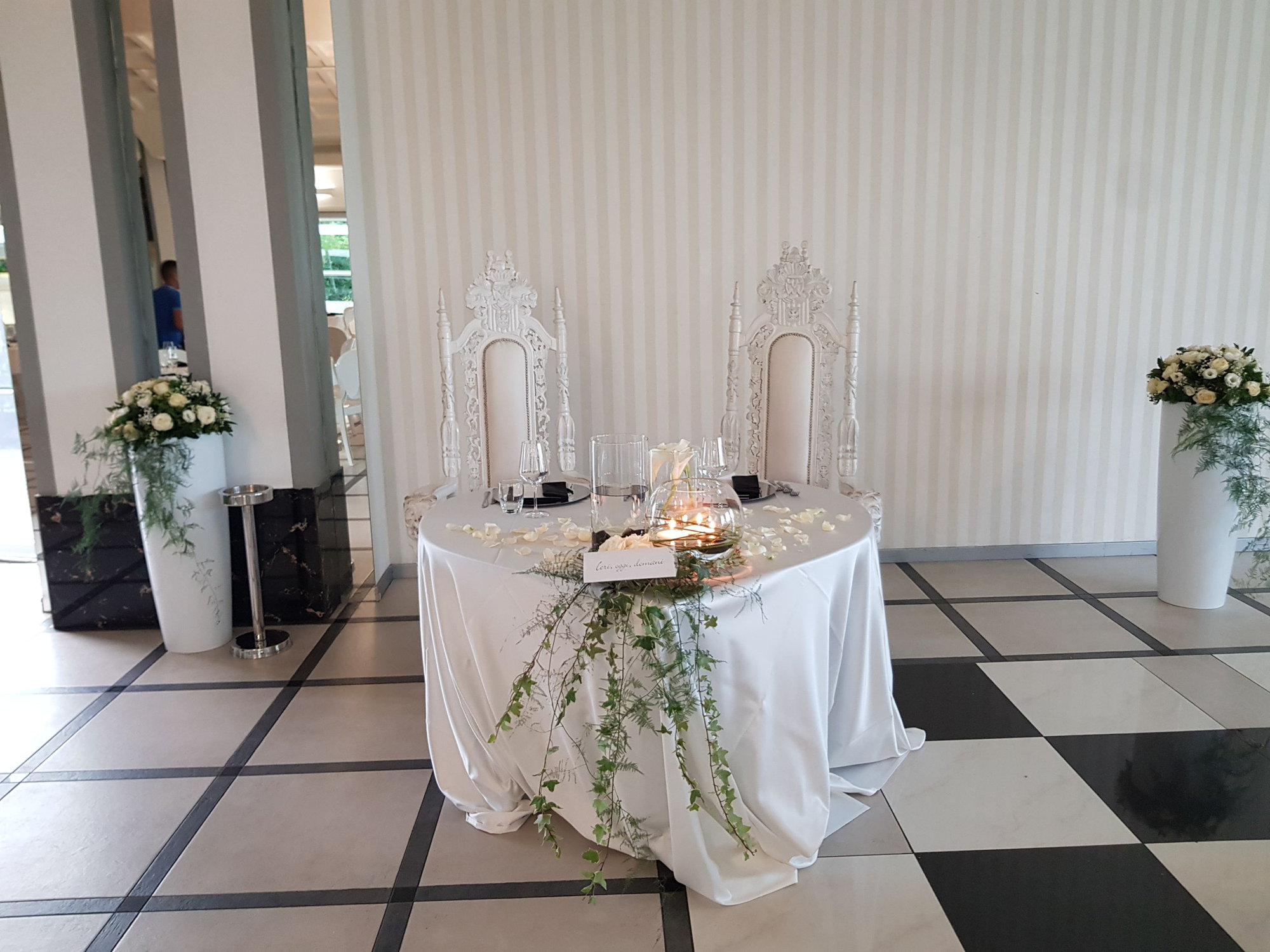 Per il tuo matrimonio a Cesano Maderno, ci occupiamo di allestire chiese, sale comunali o altri spazi dedicati alla celebrazione, creando atmosfere suggestive e romantiche. Gli allestimenti includono archi floreali, addobbi per l’altare e decorazioni per le panche, trasformando ogni luogo in uno spazio magico.